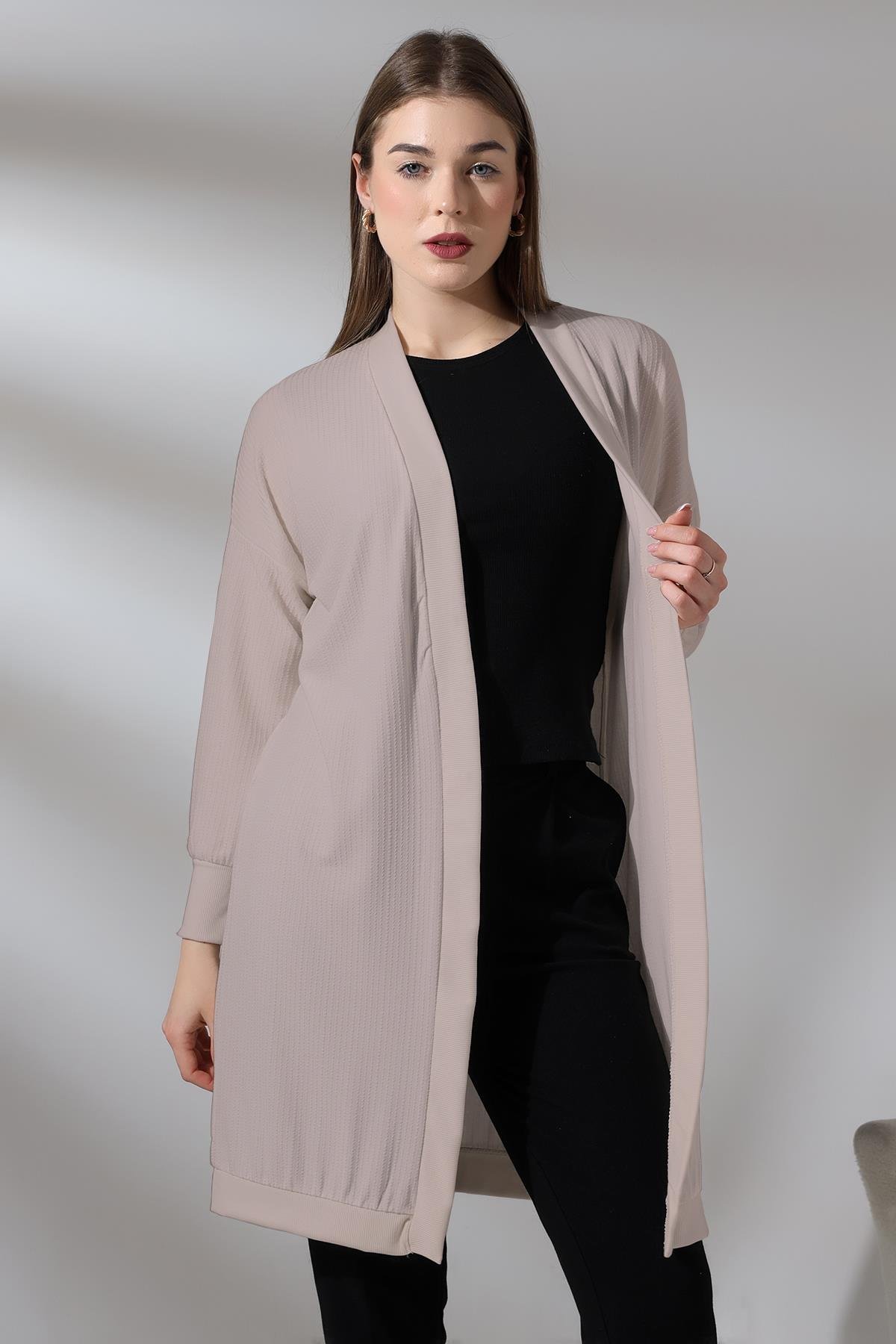 Ndola Kadın Vizon Yumuşak Dokulu Penye Düşük Uzun Kol Esnek Penye Uzun Hırka & Tesettür Hırka