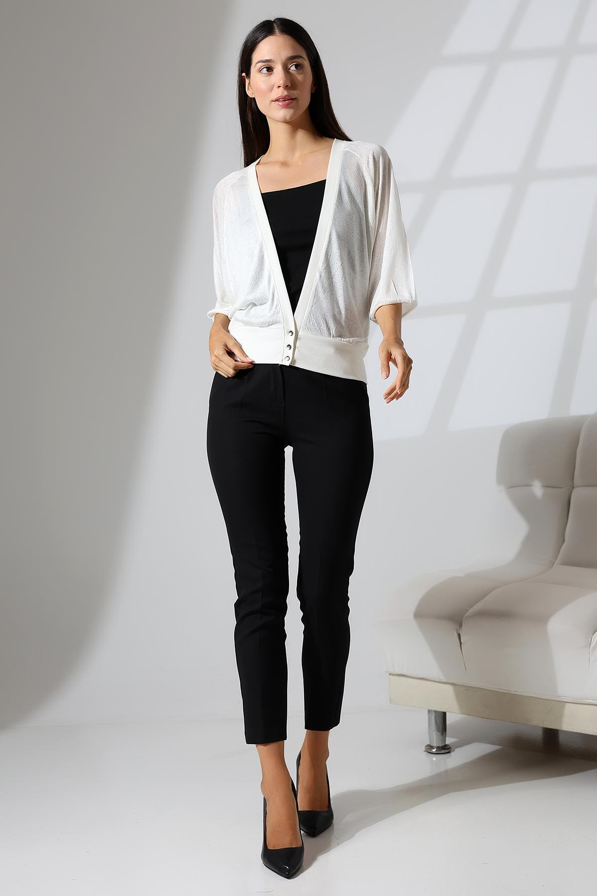 Vilnius Kadın Ekru Düğmeli Reglan Kol Ajur Jakar Kısa Penye Hırka & Hırka